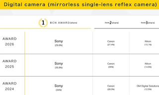 BCN AWARD 2026発表。ミラーレスはソニー首位もキヤノンが2.5pt差まで接近